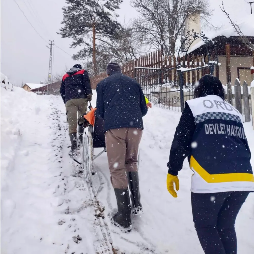 Ordu Devlet Hastanesi Hasta Nakil Birimi, Mesudiye ilçesi Sarıyayla Köyü’nde etkili olan yoğun kar yağışı ve zorlu arazi şartlarına rağmen sağlık hizmetini aksatmadan sürdürdü. Ulaşımın güçleştiği bölgede, 88 yaşındaki kadın hasta, ekiplerin tüm imkânları seferber etmesiyle güvenli bir şekilde nakledildi.