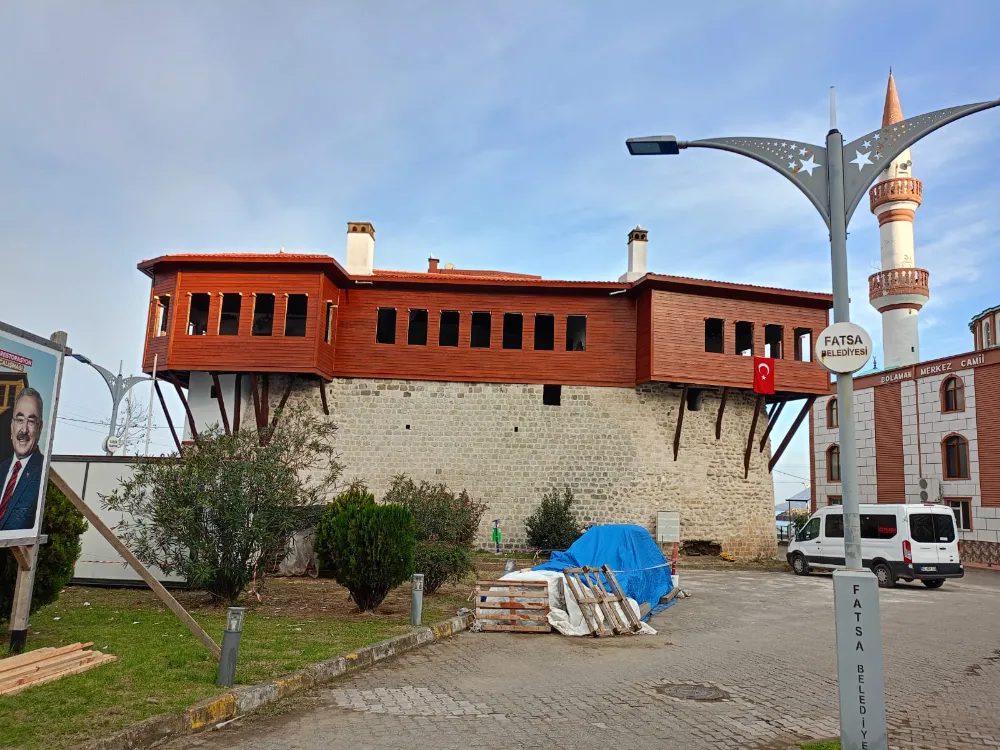 Ordu Büyükşehir Belediyesi tarafından Fatsa ilçesi Bolaman Mahallesi’nde restorasyonu sürdürülen Haznedaroğlu Konağı, çalışmalar henüz tamamlanmamış olmasına rağmen ortaya çıkan yeni görünümüyle dikkat çekiyor.
